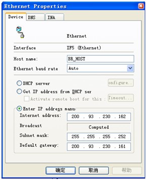 在貝加萊控制系統(tǒng)中,首先我們要對貝加萊 PLC的硬件進(jìn)行組態(tài)。組態(tài)完成后,我們需做如下配置,打開貝加萊控制系統(tǒng)的Ethernet 接口的屬性,如圖(2),將3G路由器的公網(wǎng)地址、子網(wǎng)掩碼、網(wǎng)關(guān)等依次寫入到Ethernet Properties中,然后打開DNS服務(wù),在程序中啟用DNS服務(wù)功能,將3G路由器的DNS服務(wù)器添加進(jìn)去,最后在INA服務(wù)中寫入路由器的服務(wù)端口號。通過以上設(shè)定,我們就完成了貝加萊控制系統(tǒng)的以太網(wǎng)口設(shè)定。