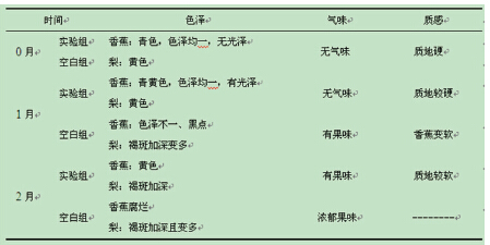 本研究將梨與香蕉共放的重要意義還在于探討香蕉自身產(chǎn)生的乙烯對(duì)梨保鮮效果的影響,希望能提供一種保鮮、銷(xiāo)售一體化的新方法。