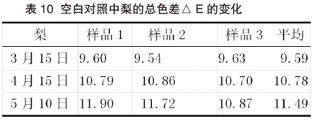 2、梨/香蕉搭檔生物調(diào)節(jié)膜對(duì)色差也有一定影響,空白組梨11.2、香蕉11.49,實(shí)驗(yàn)組梨11.2,香蕉9.35、梨10.67;