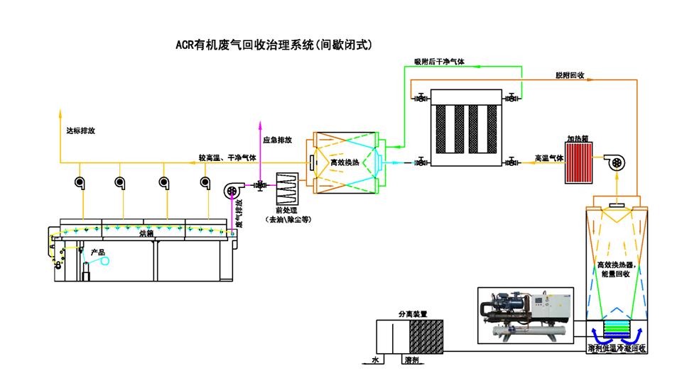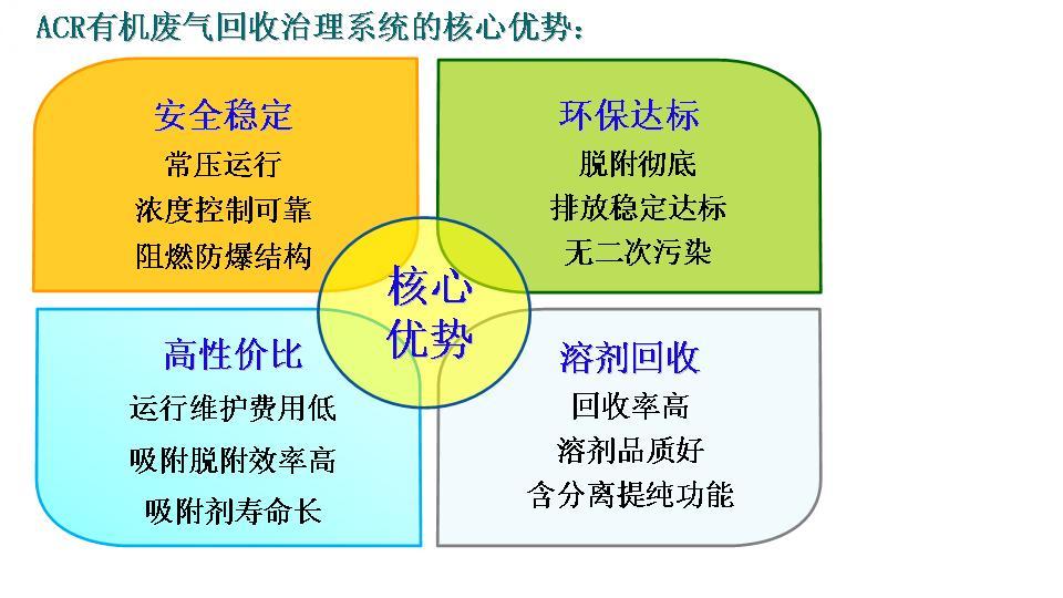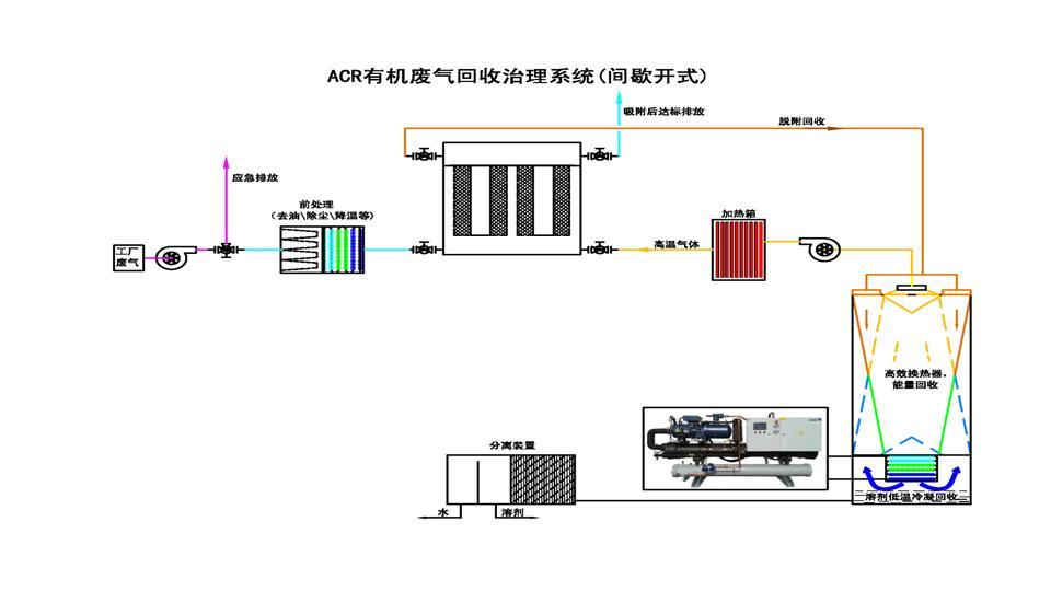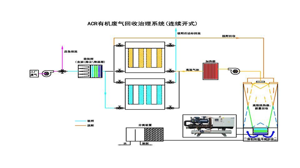針對大風(fēng)量、中低濃度的有機廢氣的處理采用ACR有機廢氣回收治理系統(tǒng)
